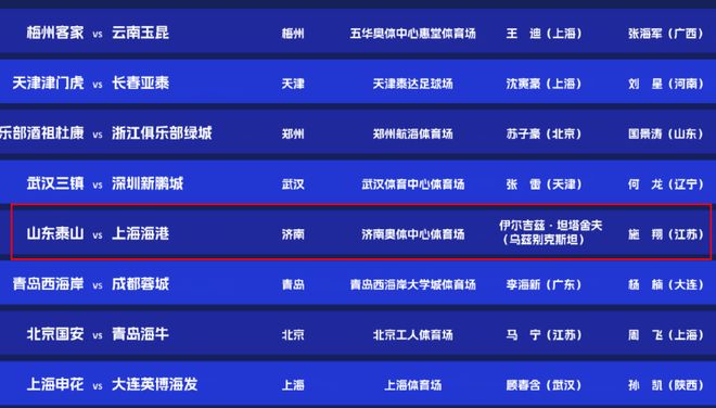 泰山队对阵海港赛前安排出炉,外籍裁判执法,25日有场决赛要关注